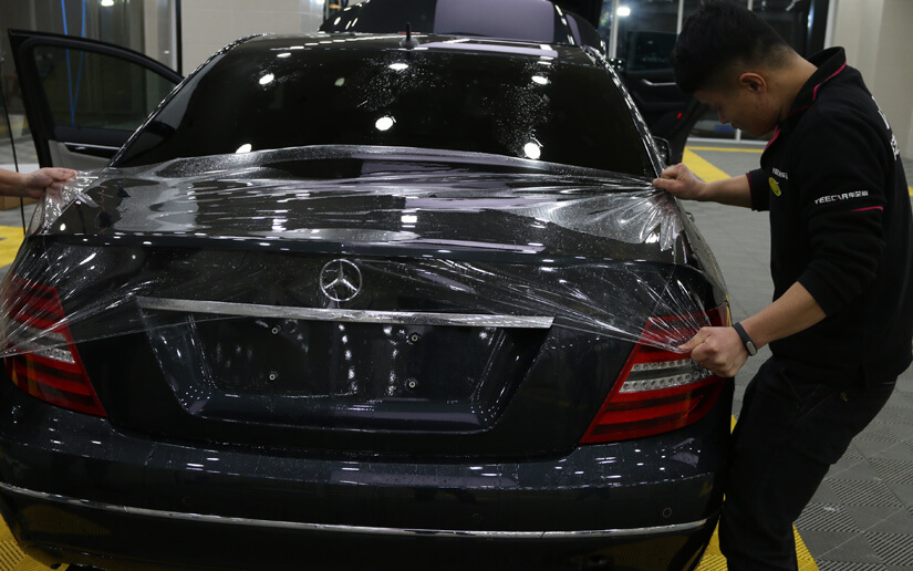 ● 奔驰C施工后效果展示,不影响原车漆颜色,提亮车漆的同时保护车漆,无难闻气味,撕掉后对车漆无损伤