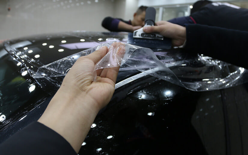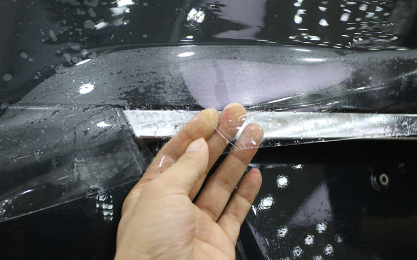 ● 隐形车衣特写展示,膜韧性很强,可以随意改变形状