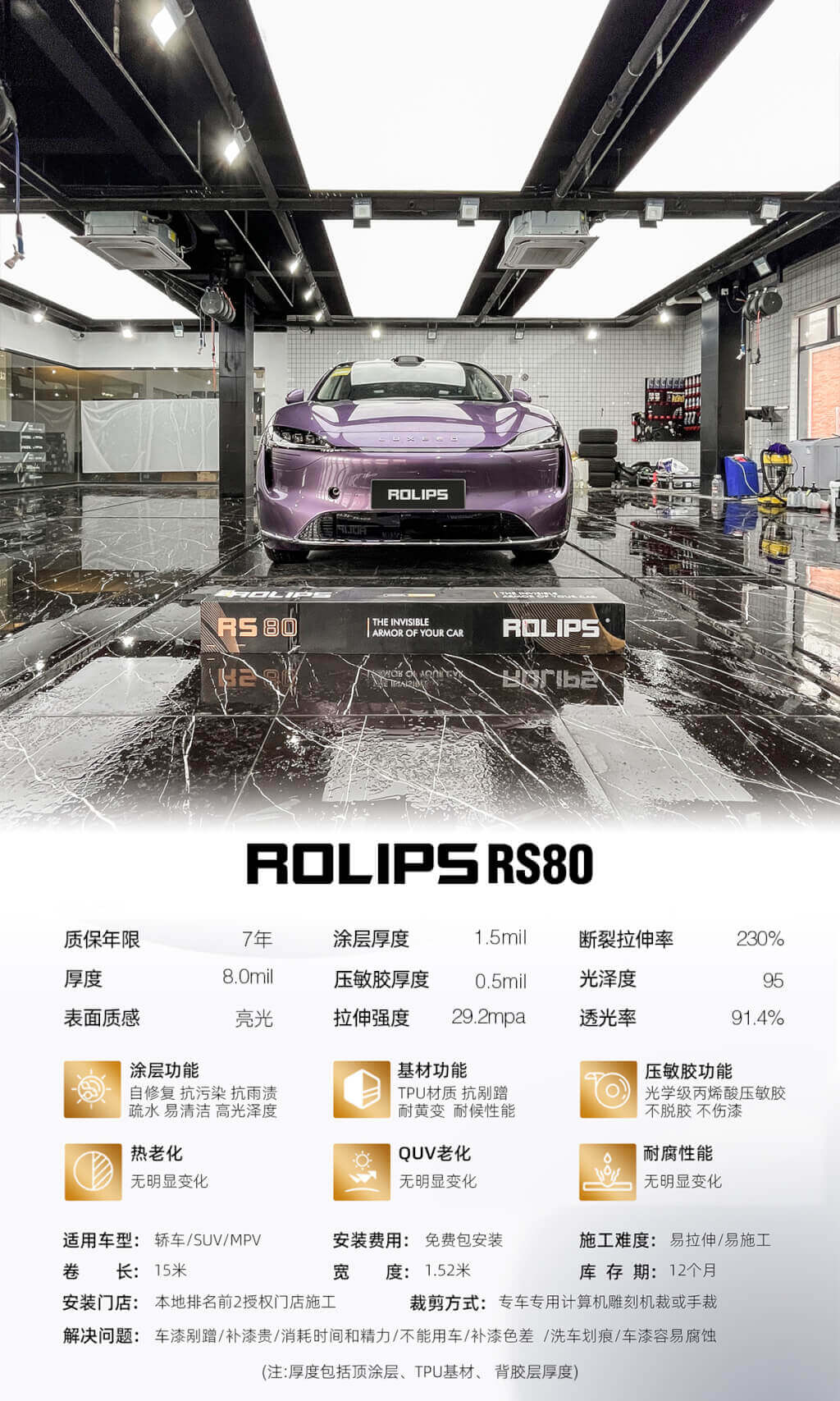 施工型号:施工ROLIPS罗利普斯RS80隐形车衣