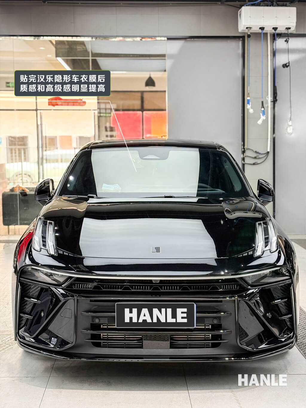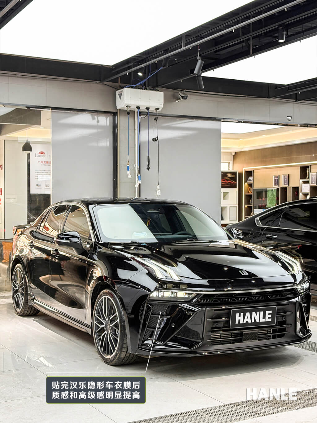 汉乐极护隐形车衣,为黑色领克 03 带来全方位的守护。它采用顶级 TPU 材质,质地坚韧,面对石子的冲击,能够轻松抵御,有效降低车漆受损风险。当遭遇轻微刮擦,车衣的自动修复技术便会大显身手,细微划痕迅速消失,让领克 03 始终保持出厂时的完美状态。