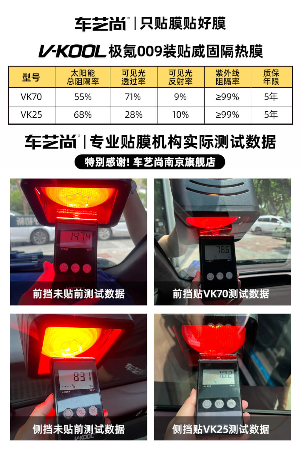 在众多品牌中,威固(V-KOOL)以其尖端的磁控溅射金属膜技术和卓越性能,成为高端汽车隔热膜的代名词。针对极氪009这样的大型豪华MPV,我们推荐其旗舰组合方案: