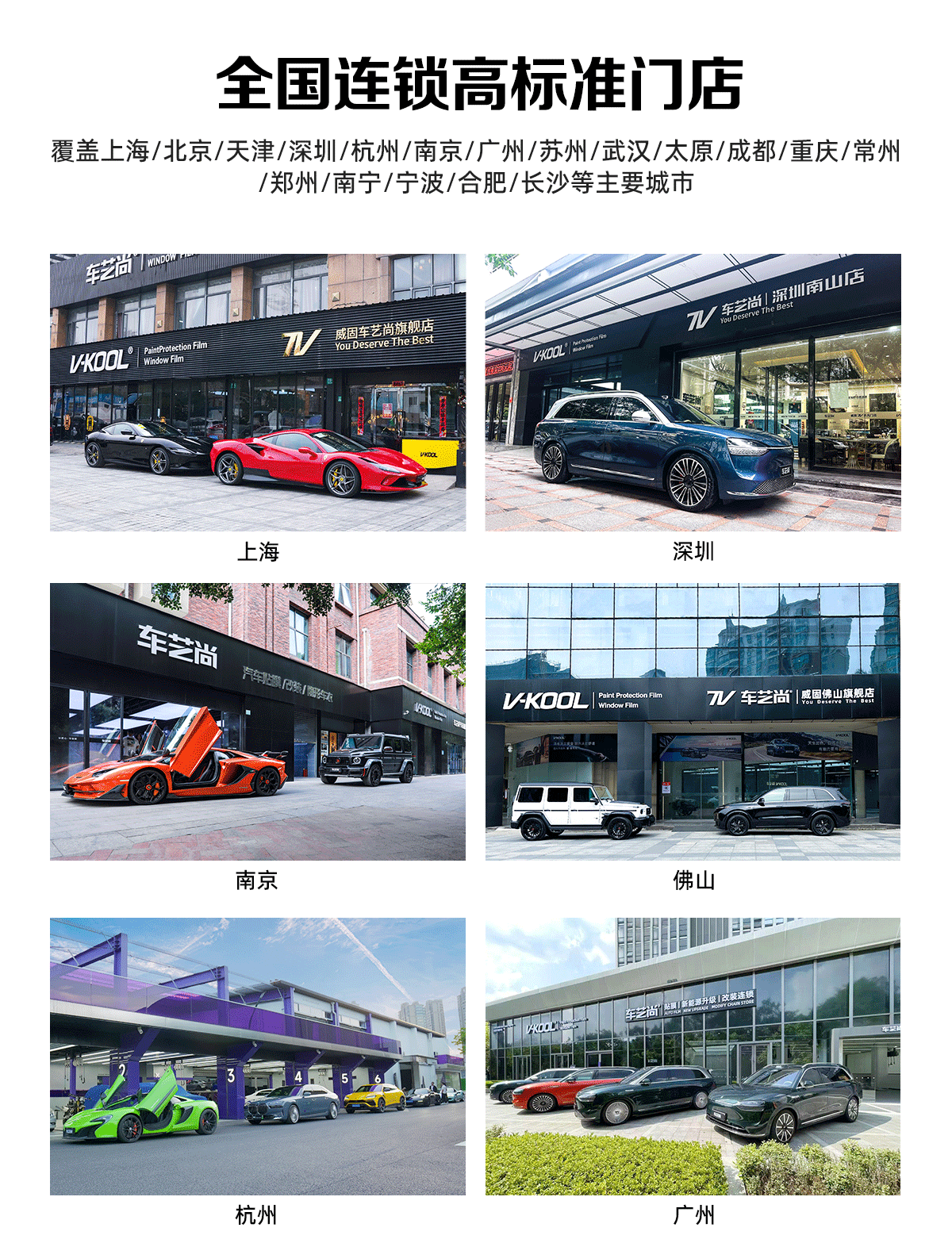 准备给爱车贴膜的车友,来车艺尚汽车贴膜门店,上海北京、广州深圳、天津太原、成都重庆、长沙武汉、杭州南京等多个城市均有车艺尚直营门店,随时欢迎您的光临~现在预约,还有惊喜礼包相送!