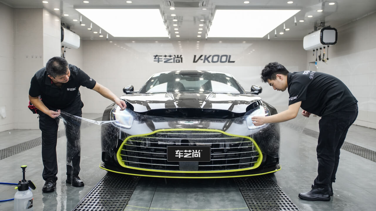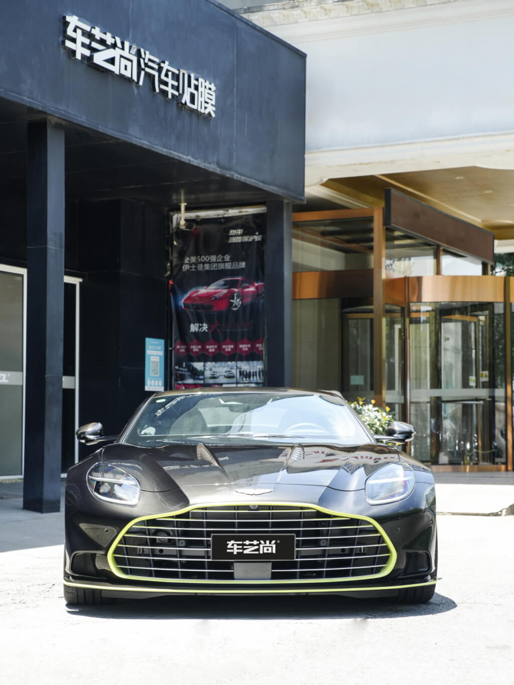 当一辆阿斯顿马丁驶入上海陆家嘴的街道,它承载的不仅是速度与激情,更是一件流动的艺术品。原厂车漆的珍贵在于其不可复制性——即便后期补漆,在硬度、光泽与抗腐蚀性上亦无法媲美流水线上诞生的完美涂层。然而为阿斯顿马丁装贴车衣,远非普通车型可比。其车身遍布“锐利折线与复杂曲面”:前杠宽大而缝隙精密,车顶雷达探头需精准开孔,侧裙的弧形落差考验延展极限。一处裁切失误或包边不足,便可能破坏整体美感。