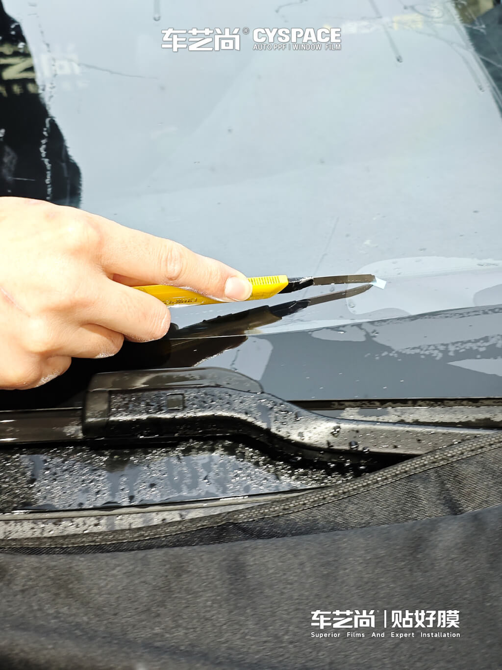 在传统的窗膜施工中,技师往往需要用小刀在车窗玻璃上进行“手工精裁”,刀片稍有不慎就会在玻璃表面留下细微划痕,甚至割伤汽车胶条与漆面。而在新能源车上,车玻璃与门板、B 柱钢琴烤漆面板之间的缝隙极为精密,一旦误伤将大幅增加维修成本,后续还可能导致电子设备的密封性受损。