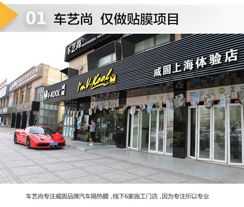 车艺尚汽车贴膜连锁是扎根于上海的专业贴膜品牌,是威固玻璃膜、龙膜隐形车衣、XPEL隐形车、衣冠蝶隐形车衣等主要品牌在上海的授权运营商!目前旗下有9家品牌方授权直营店面,主营汽车贴膜和漆面隐形车衣。公司有华东地区优秀的技师团队,以及从推广、销售再到施工和售后的管家式服务体系!我们的核心服务是通过严谨专业的施工品质,为车友提供汽车贴膜安装服务典范!在汽车后市场树立优秀的品牌形象和人文风格!目前拥有6家专营店:浦东官方体验店、吴中路店威固专营店、浦西宝山威固形象店、莘庄威固形象店、张杨路威固形象店、徐汇威固形象店!