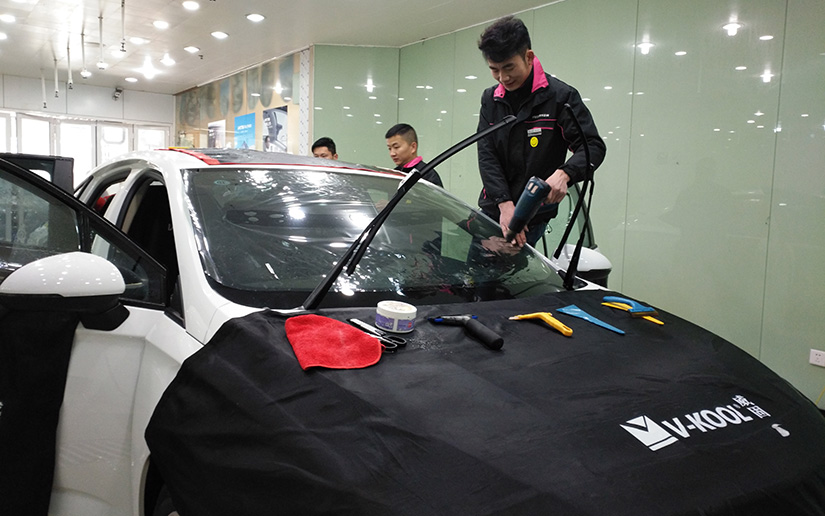 ● 前档烤膜中,把膜和玻璃的弧度烤成一致,防止施工后出现翘边等问题