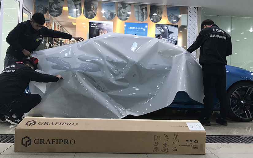 ● 第一步依旧是车漆清洗后开进无尘间降尘,并大致裁出膜的形状