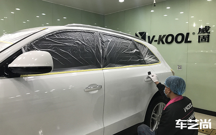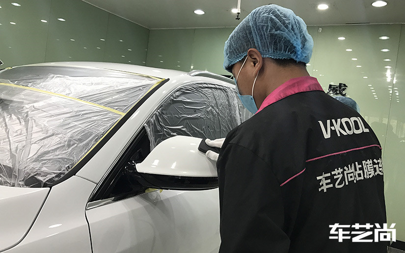 ● 车身镀晶施工中,车艺尚对车窗镀铬件部位也会严密保护