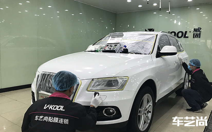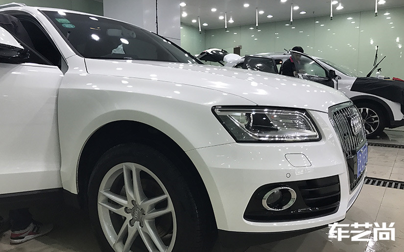 镀晶就是在不损伤车漆的基础上在车漆表面涂上一层镀晶剂,形成一层车漆保护膜,保护膜能够起到把车漆与外界隔离的作用,从而避免车漆与空气接触发生氧化。到店的这辆白色Q5,车主选择的是可保持2年的SONAX超级纳米镀晶,感谢车主对车艺尚的支持与信任,下面来看具体的施工流程。