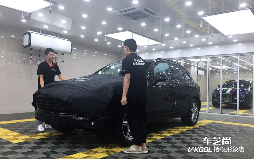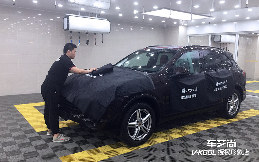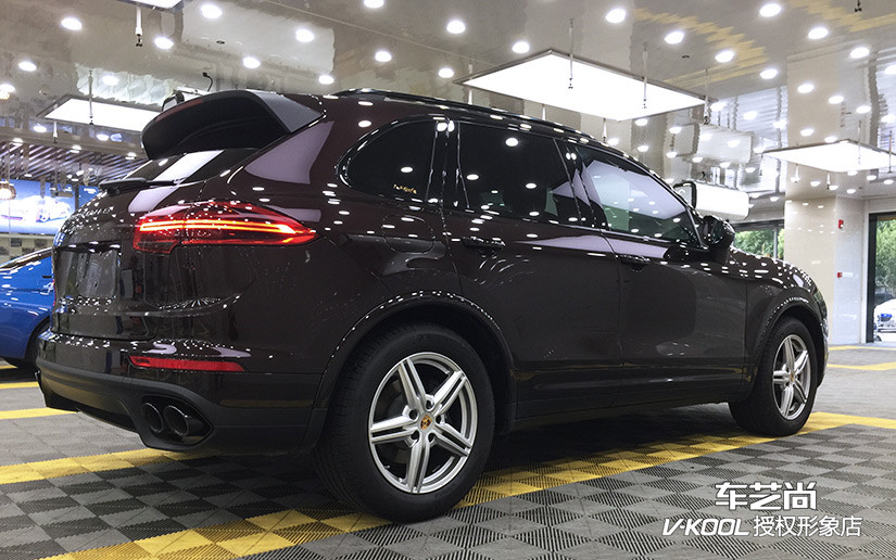 ● 先看下今天保时捷卡宴车艺尚贴膜后施工效果,前档V70+侧后档V40
