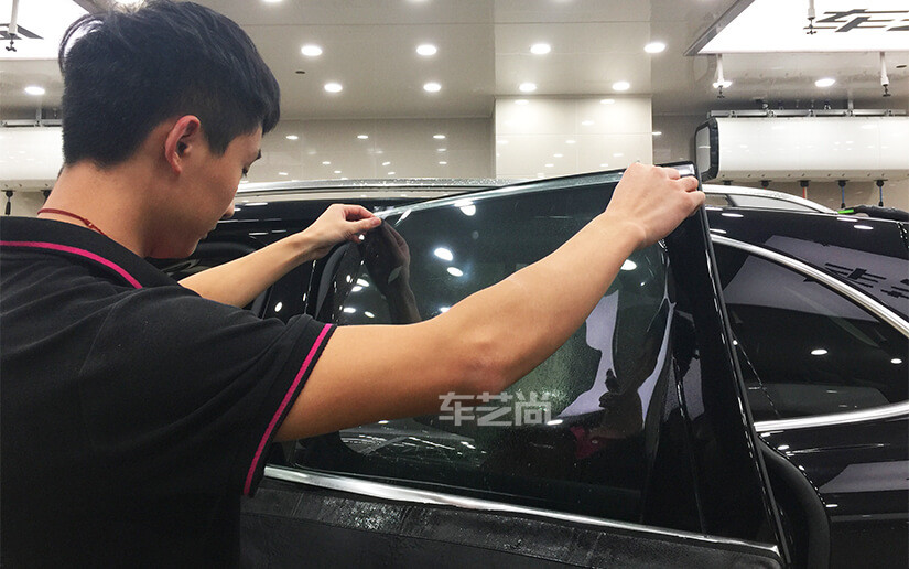 车艺尚技师专注贴膜的每一个细节,膜贴到了玻璃的边缘,整体美观大方裁剪工整,几乎看不出贴膜的痕迹。