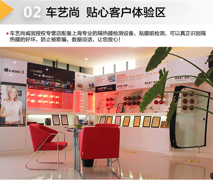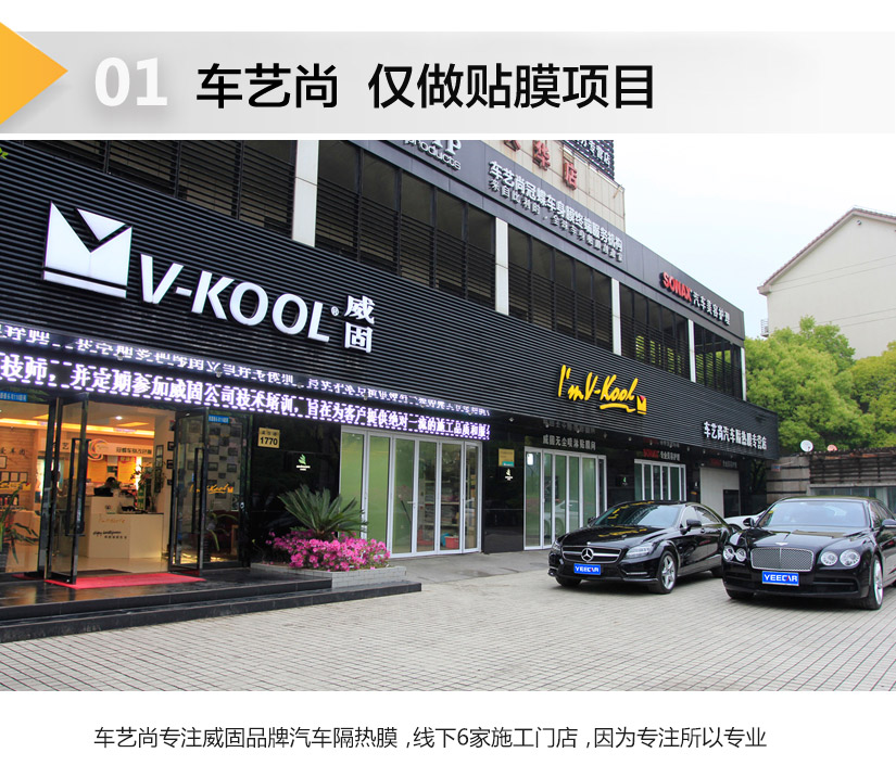 车艺尚汽车贴膜连锁是扎根于上海的专业贴膜品牌,是威固玻璃膜、龙膜隐形车衣、衣冠蝶隐形车衣等主要品牌在上海的授权运营商!目前旗下有9家品牌方授权直营店面,主营汽车贴膜和漆面隐形车衣。公司有华东地区优秀的技师团队,以及从推广、销售再到施工和售后的管家式服务体系!我们的核心服务是通过严谨专业的施工品质,为车友提供汽车贴膜安装服务典范!在汽车后市场树立优秀的品牌形象和人文风格!目前拥有6家专营店:浦东官方体验店、吴中路店威固专营店、浦西宝山威固形象店、莘庄威固形象店、金桥威固形象店、徐汇威固形象店!