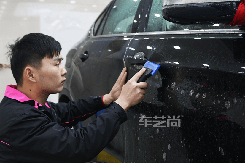 车艺尚使用全套进口专业施工工具,刮去多余水分的同时,不会造成车膜的安装损伤。