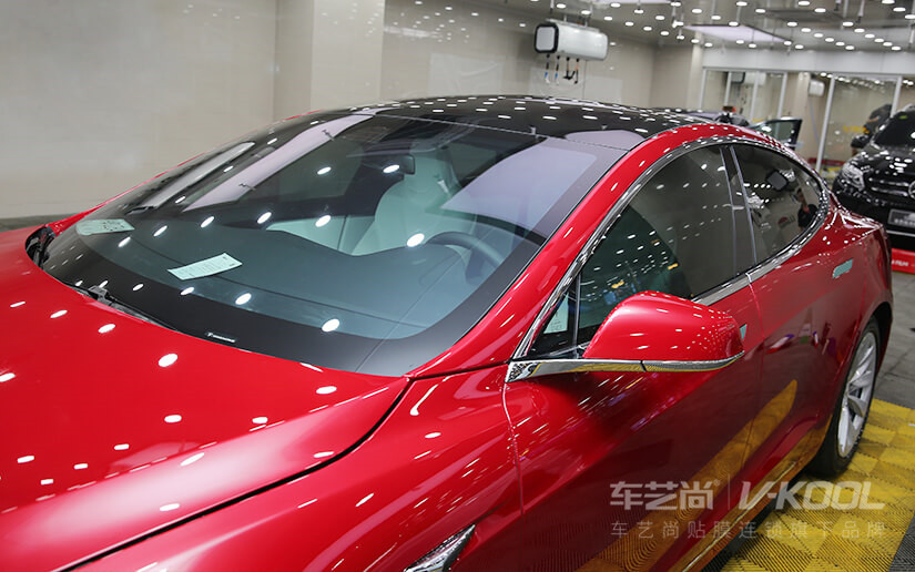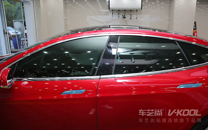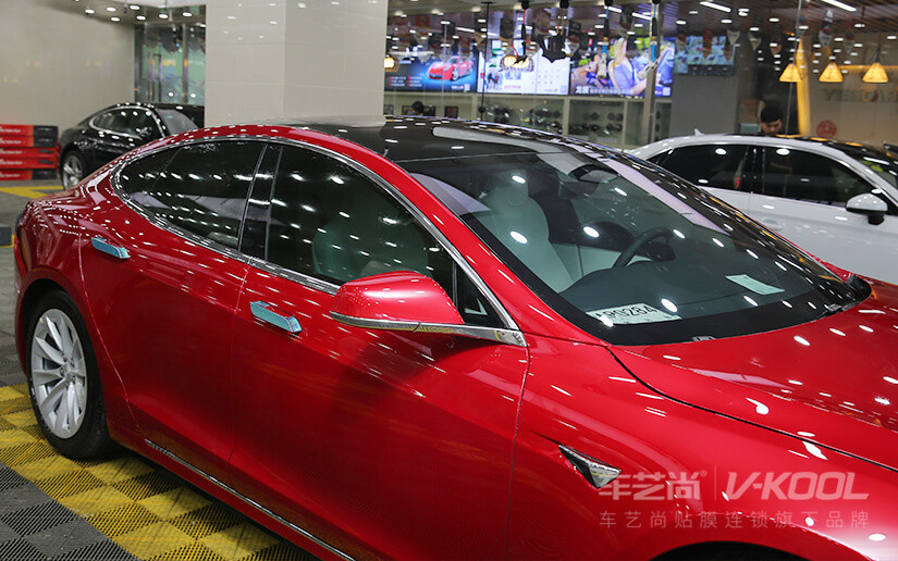 特斯拉威固前档V70+侧窗V40贴膜施工后效果展示