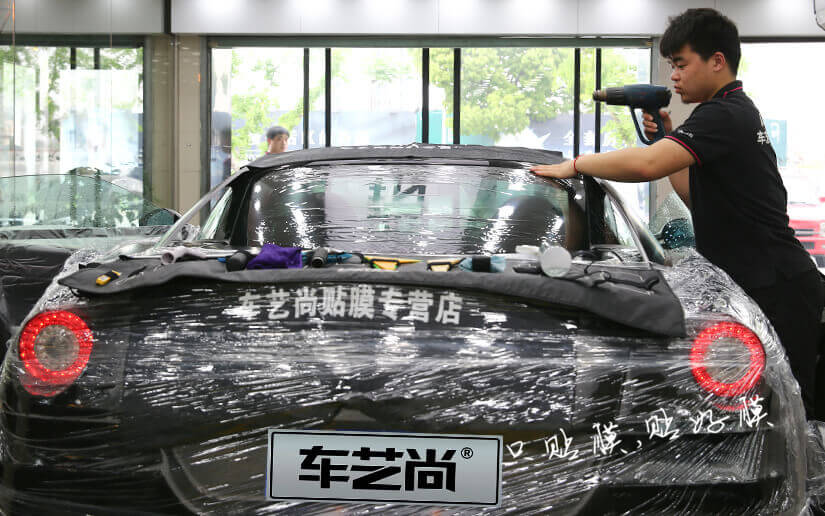 汽车玻璃膜贴膜前要先在玻璃外面进行烤膜定型,车艺尚使用德国进口博世恒温烤枪,避免车膜和玻璃受损伤。