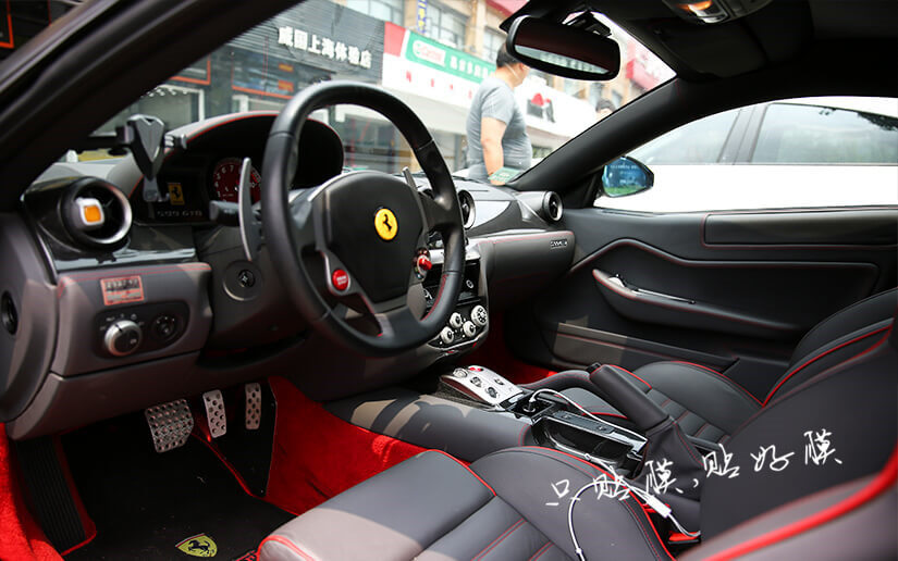 法拉利不仅车身造型炫酷,漂亮的内饰也很养眼呢~威固隔热膜物理反射,隔绝紫外线和绝大多数红外线,保护爱车内饰~