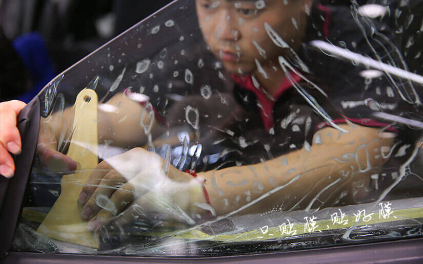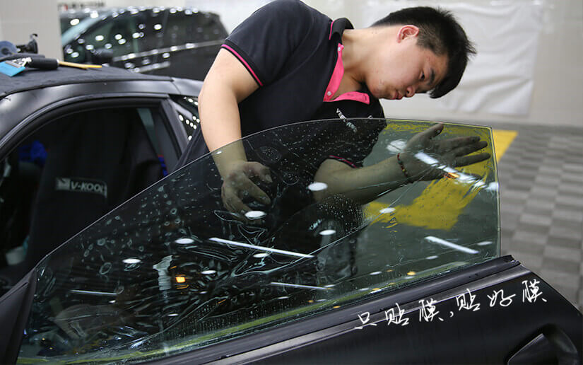 车艺尚技师专注贴膜的每一个细节,膜贴到了玻璃的边缘,整体美观大方裁剪工整,几乎看不出贴膜的痕迹。
