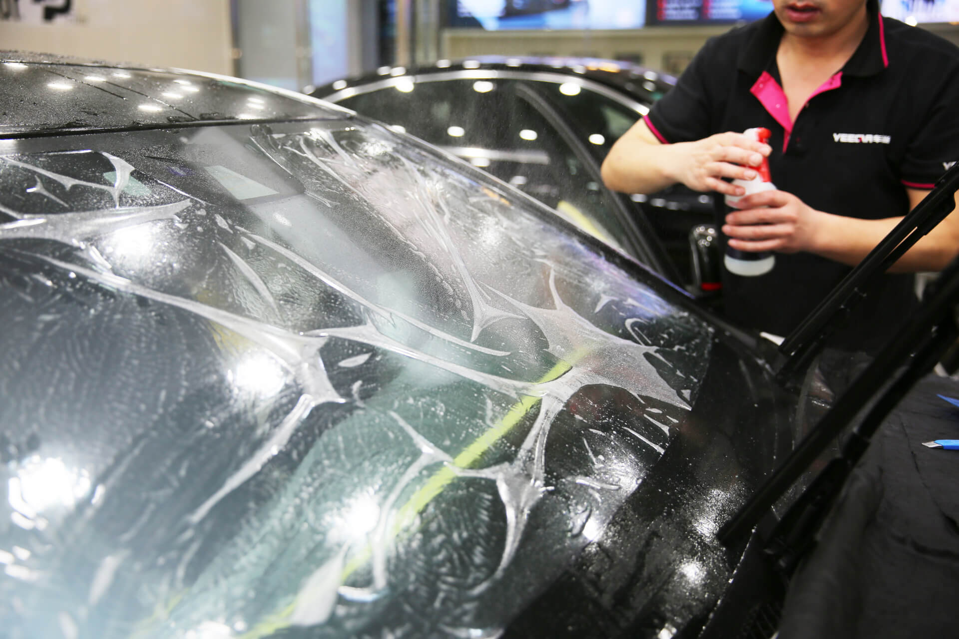 车艺尚威固标准贴膜施工,全车贴膜仅需少量水,防止前挡操作台和车窗下方的电子配件进水导致车辆故障,同时也能够避免用水过多腐蚀车内饰。