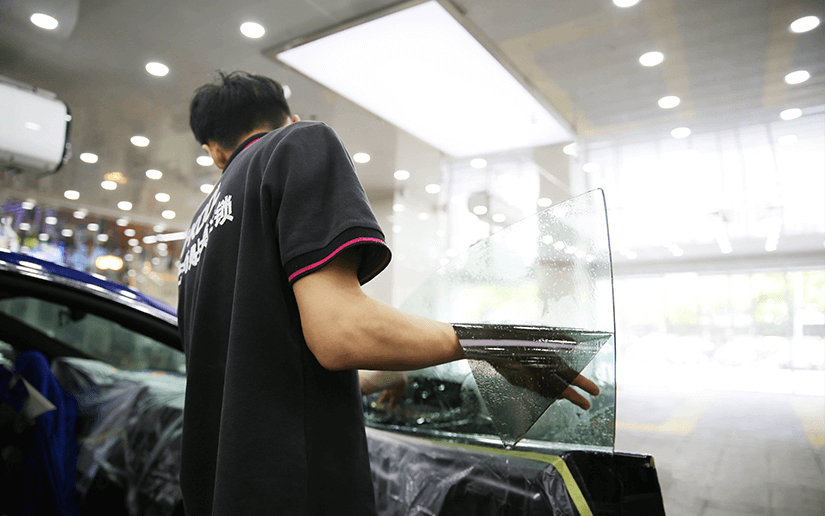 车艺尚技师专注贴膜的每一个细节,膜贴到了玻璃的边缘,整体美观大方裁剪工整,几乎看不出贴膜的痕迹。