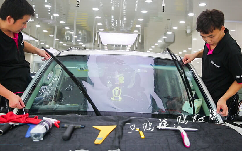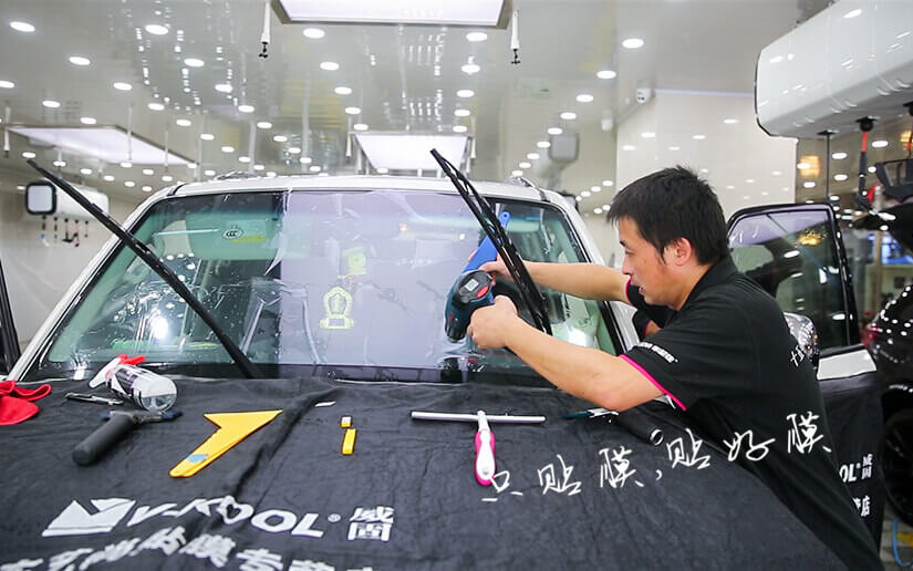 汽车玻璃膜贴膜前要先在玻璃外面进行烤膜定型,车艺尚使用德国进口博世恒温烤枪,避免车膜和玻璃受损伤。
