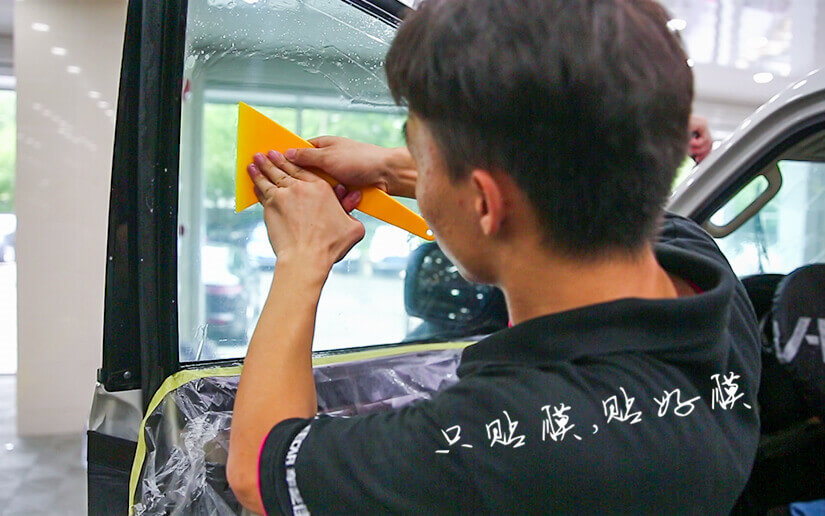 车艺尚技师专注贴膜的每一个细节,膜贴到了玻璃的边缘,整体美观大方裁剪工整,几乎看不出贴膜的痕迹。
