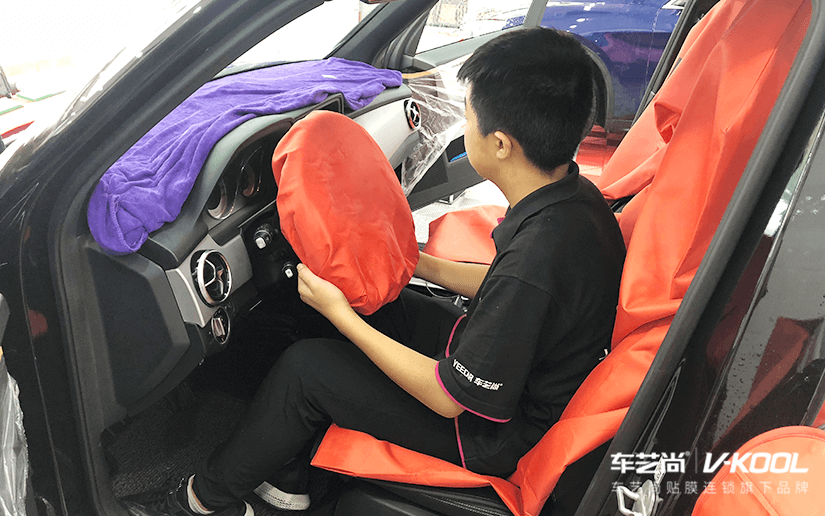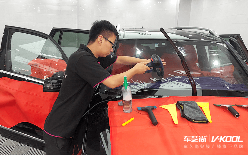 进口博士烤枪恒温烘烤,不伤膜,微距施工,几乎看不出贴膜痕迹。