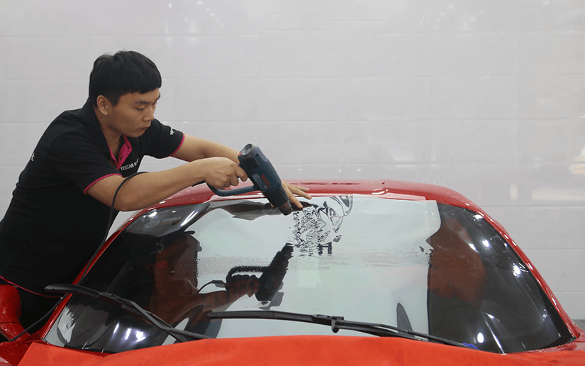 进口博士烤枪恒温烘烤,不伤膜,微距施工,几乎看不出贴膜痕迹。