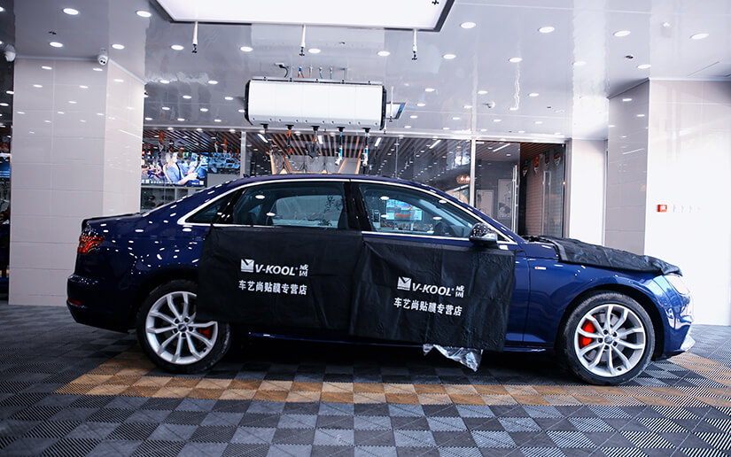 威固隔热膜施工案例-奥迪(蓝色)专业汽车贴膜