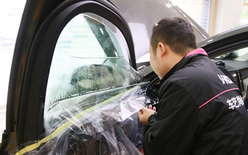 车艺尚采用整车微水贴膜,避免电器门板受潮短路等施工伤害;