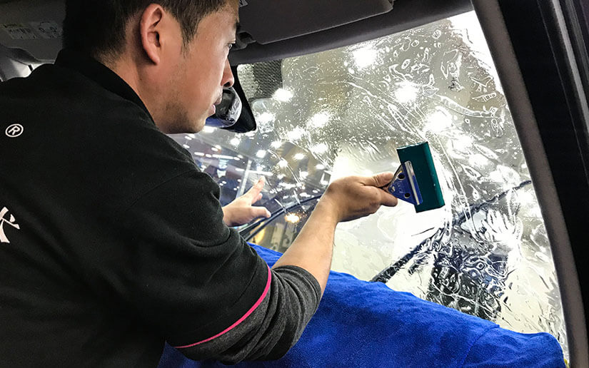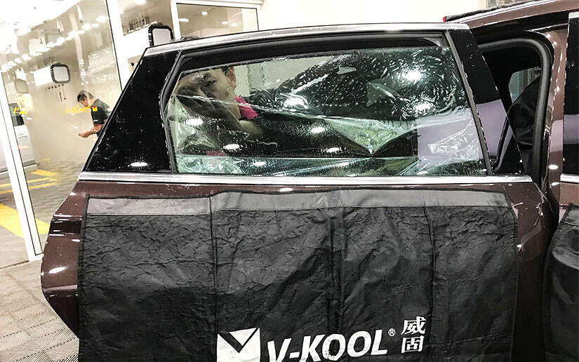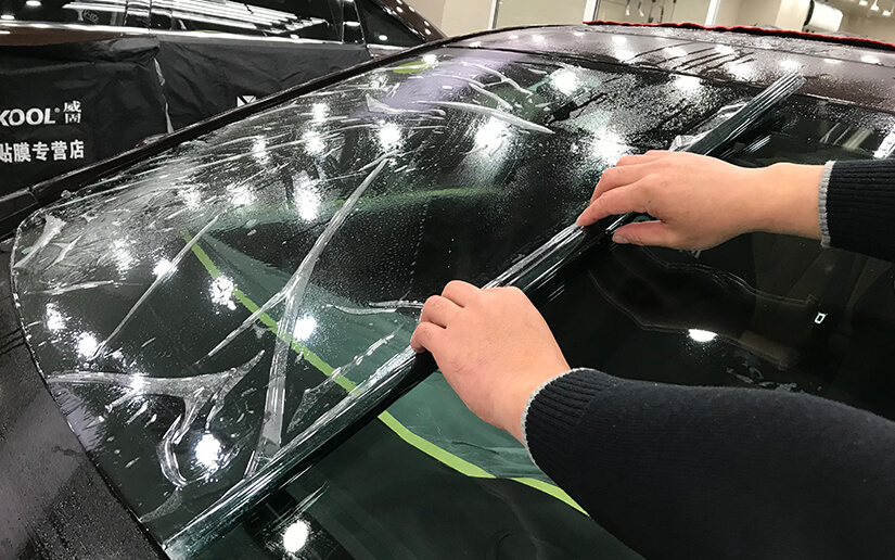 认真刮除每一滴水,让膜与车窗紧密贴合