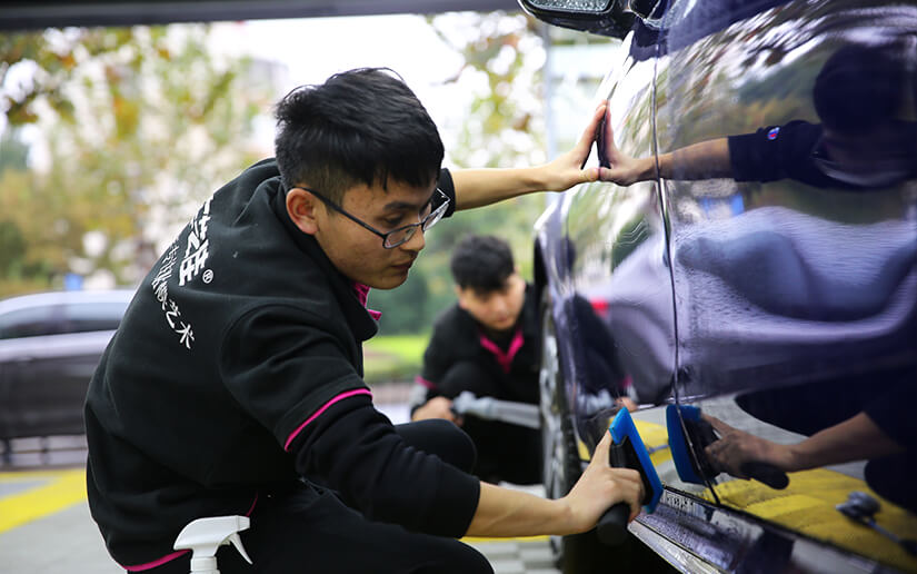 刮去多余水分和气泡,使车漆跟车衣,更贴合~