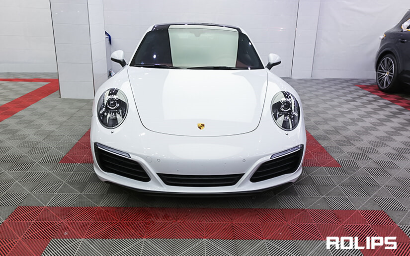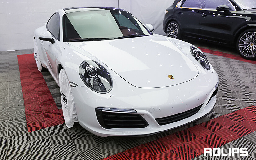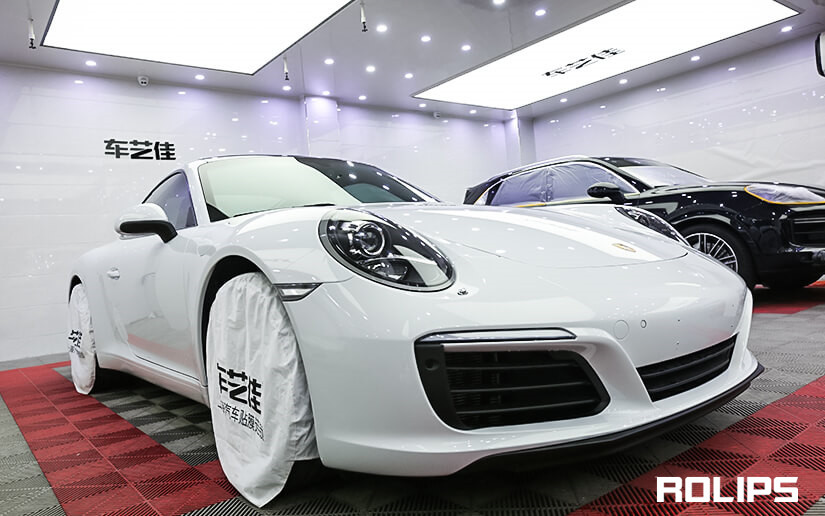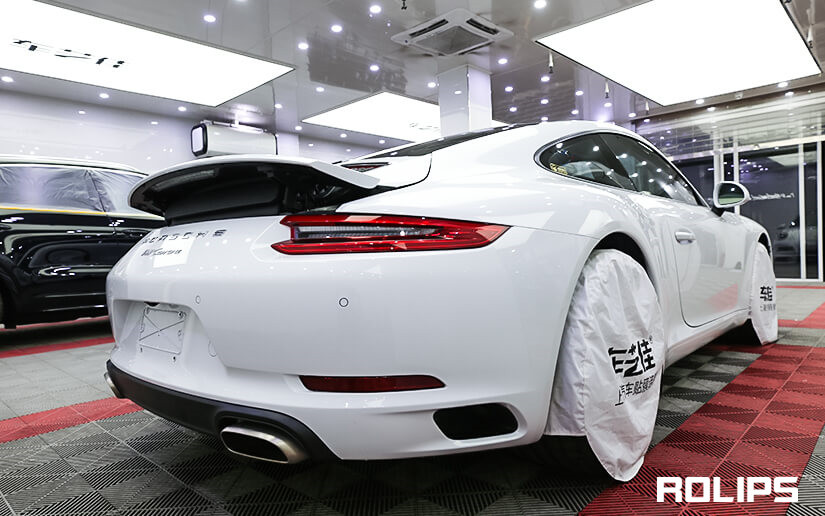 白色保时捷911汽车贴膜施工ROLIPS漆面保护膜