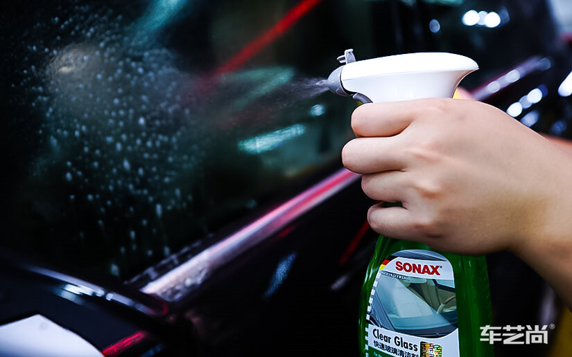 A. 先用SONAX玻璃水喷洒车窗玻璃;