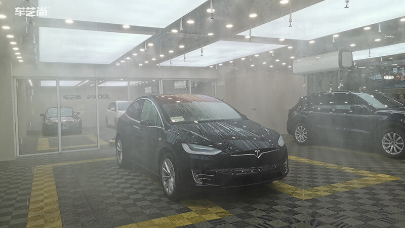 降尘系统开启,模拟雨天的空气湿度 、达到理想的贴膜环境