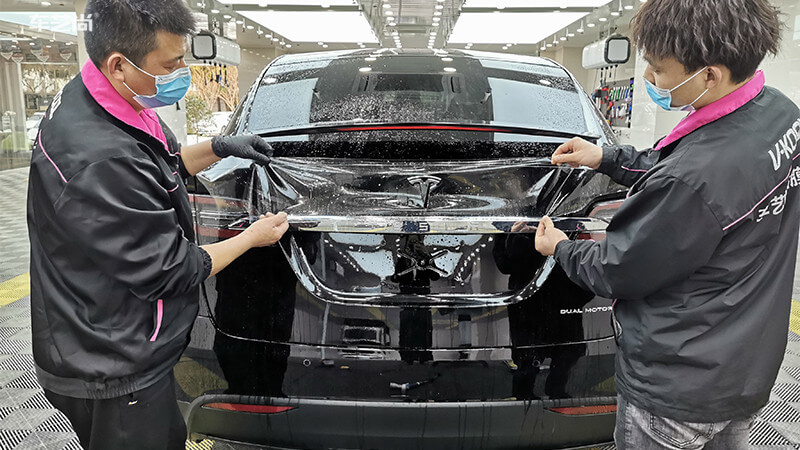膜只是一种原材料,  没有贴到车身之前叫做半成品,需要拥有丰富经验的施工师傅,贴膜技术至关重要,优秀的施工工艺才能保证以后在使用过程中不起泡,不翘边。不出现水波纹