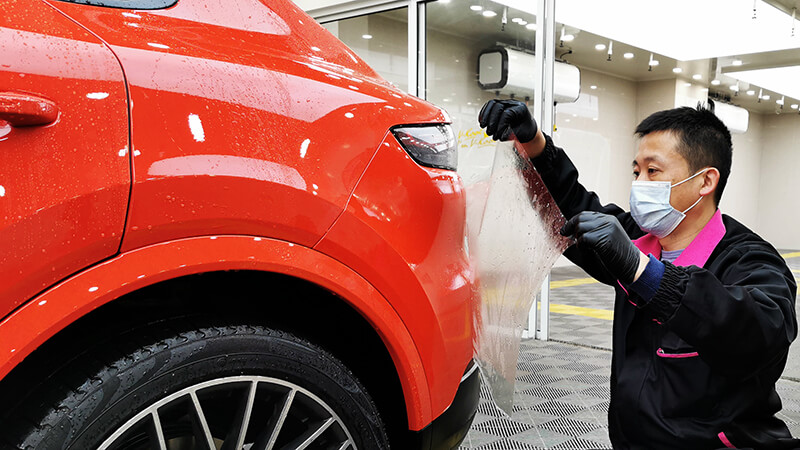 膜只是一种原材料,  没有贴到车身之前叫做半成品,需要拥有丰富经验的施工师傅,贴膜技术至关重要,优秀的施工工艺才能保证以后在使用过程中不起泡,不翘边。不出现水波纹