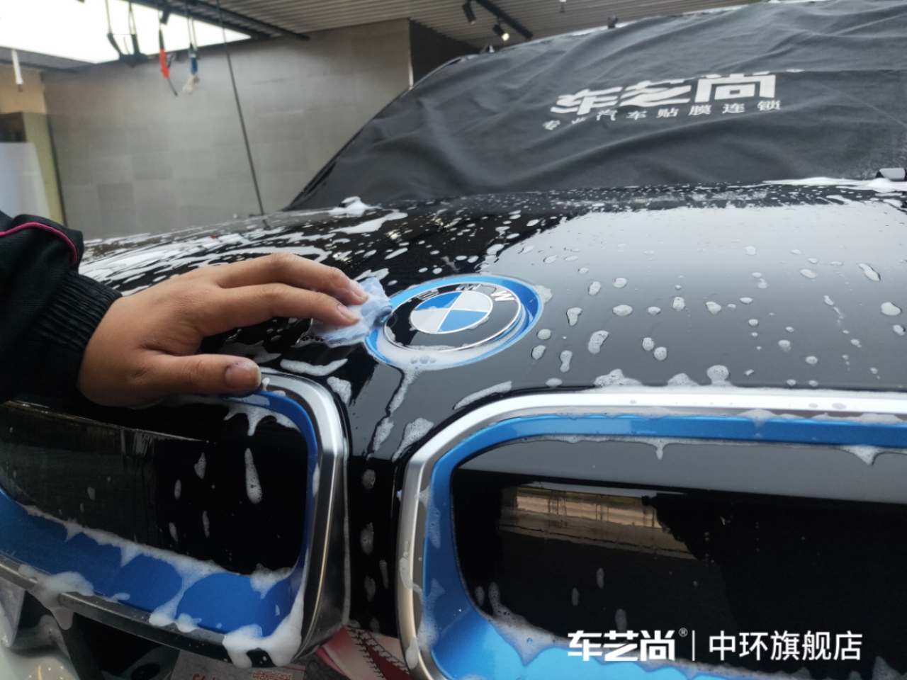 车艺尚汽车贴膜隐形车衣施工前,会对车辆进行彻底的清洁,不放过任何一个缝隙死角,保持漆面的洁净,确保贴膜后无尘点。