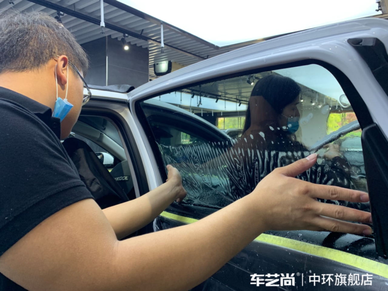 车艺尚技师微距施工技术,将膜贴到了玻璃边缘,几乎看不出贴膜痕迹,不影响整车美观度。