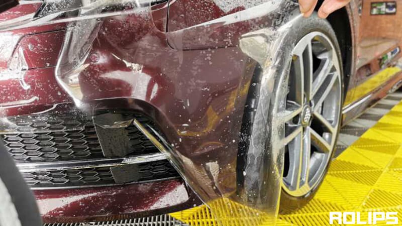 ROLIPS要求在隐形车衣施工前,对车辆进行彻底的清洁,不放过任何一个缝隙死角,保持漆面的洁净,确保贴膜后无尘点。