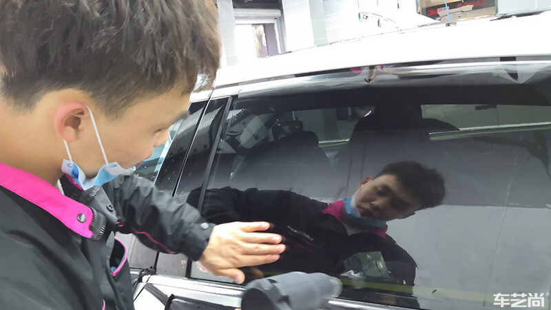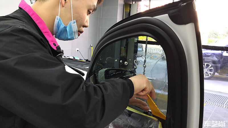 车艺尚技师微距施工技术,将膜贴到了玻璃边缘,几乎看不出贴膜痕迹,不影响整车美观度。