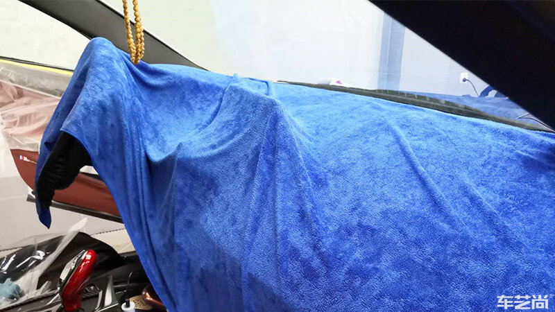 车艺尚贴膜技师在施工中采用500ML微水施工(市面上一般采用3000ML,甚至更大的用水量),避免因为用水过多对内饰、仪表盘、真皮座椅、电路系统等引起受潮发霉或短路危险。