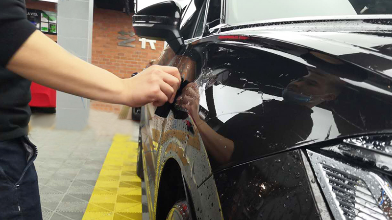 ROLIPS要求在隐形车衣施工前,对车辆进行彻底的清洁,不放过任何一个缝隙死角,保持漆面的洁净,确保贴膜后无尘点。