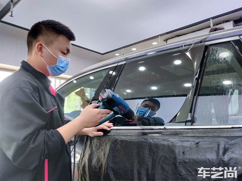 烘烤定型中,温度过高或过低都不行,这就既需要恒温的烤枪,又需要技师的手法,烘烤的距离、时长,都影响着膜的延展度。不专业的烘烤操作很容易烤伤车膜,甚至是爱车的玻璃。