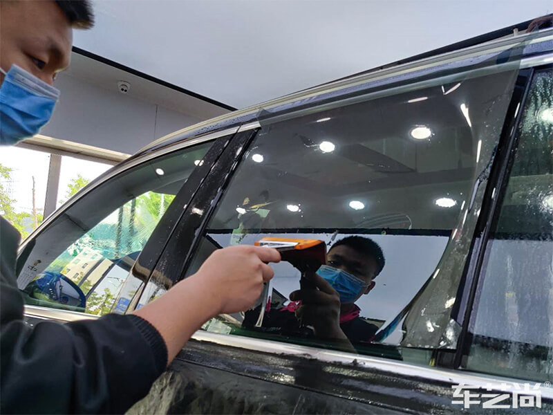 车艺尚技师微距施工技术,将膜贴到了玻璃边缘,几乎看不出贴膜痕迹,不影响整车美观度。