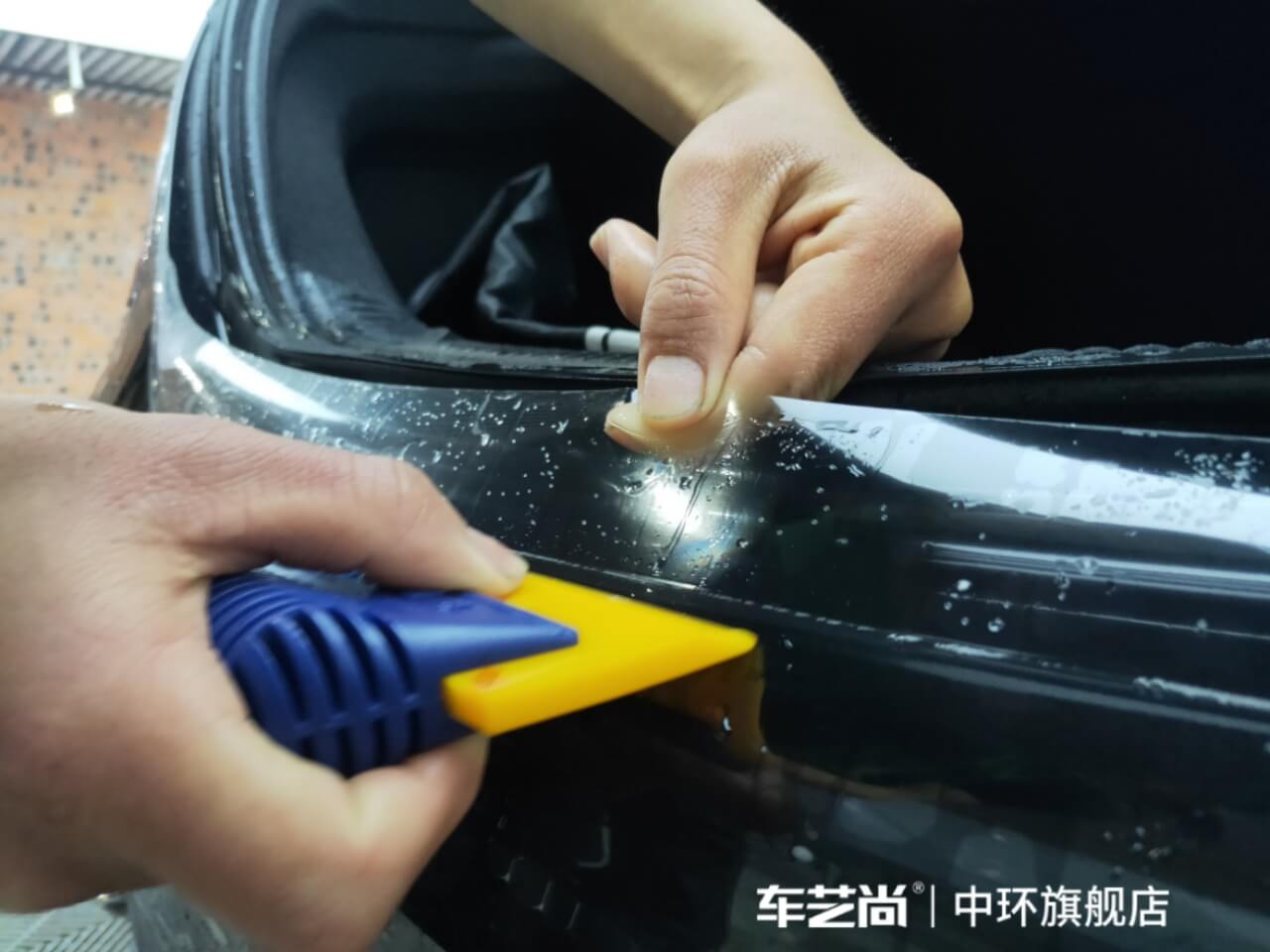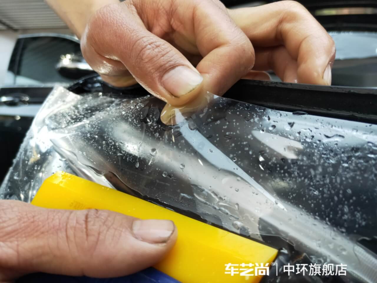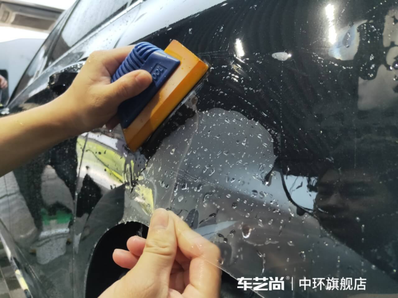 车艺尚拥有更精准的包边预留设计,电脑裁剪,匹配车身的每一个弧度,隐形车衣装贴过程中,不拆装不动刀无划痕。