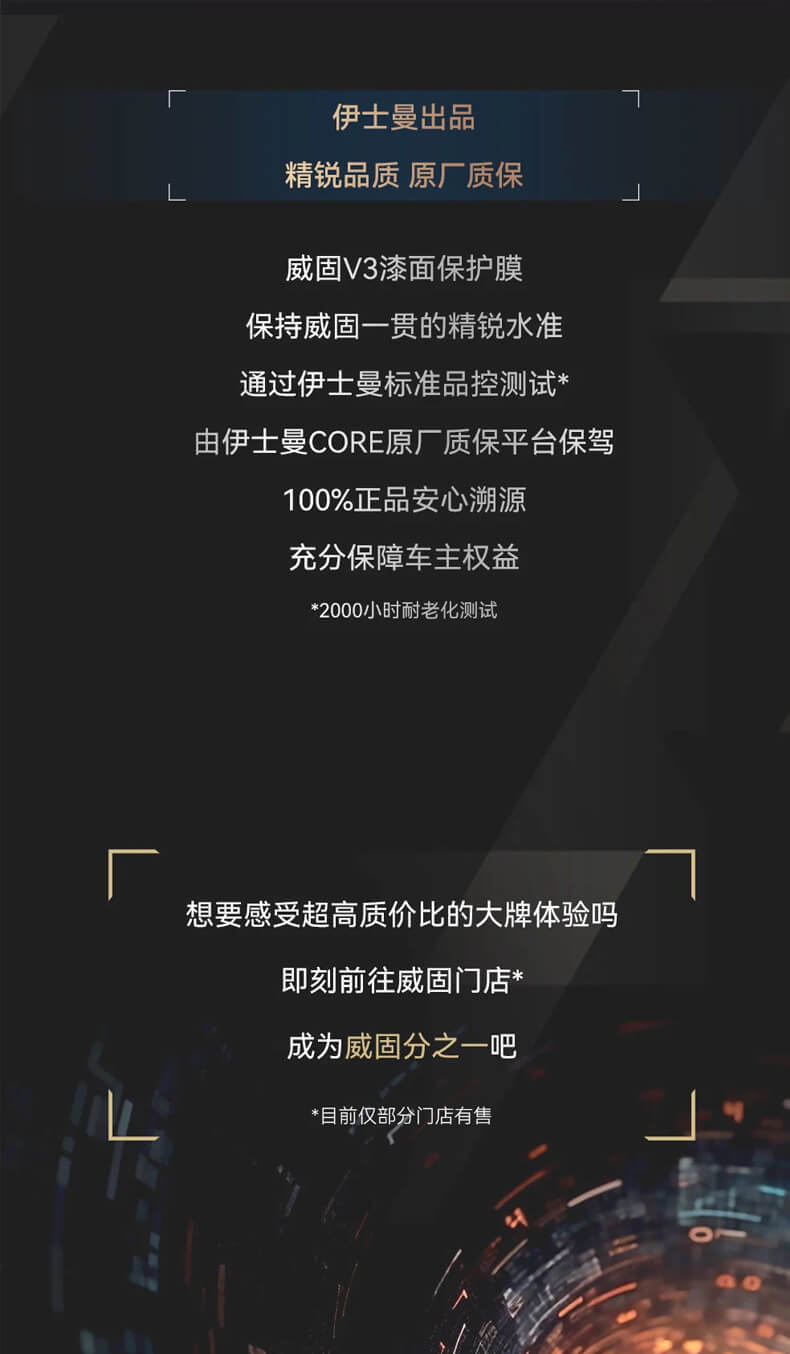 官方授权 电子质保 威固隐形车衣透明漆面保护膜V-3
