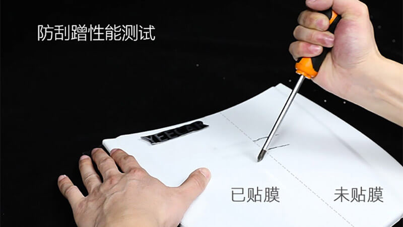 就像上面说的“划痕自动修复”,好的涂层几乎可以做到“秒修复”,但这种修复是没办法肉眼看出来的,只能通过测试才能看到效果。所以贴车衣之前,大家可以先用刷子/钢丝球/笔尖等划伤一个痕迹,一定是肉眼可见的那种,然后用手揉搓、热水淋浇的方式观看划痕情况,或者用门店的热烤枪烘烤,若是可以恢复原状,这种车衣涂层就是可以的!