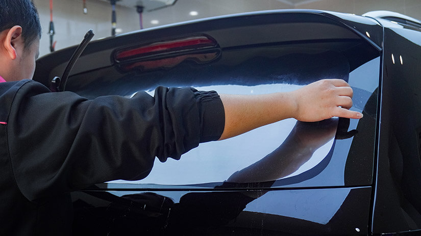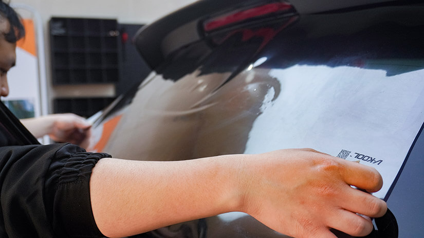 ④贴后风挡玻璃膜一定不能用深色膜,这样会有一定的风险隐患,会给后车造成一定的视觉盲区。