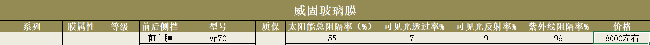 目前,能达到4MIL的就属威固的vp70前挡,价格在7000左右;