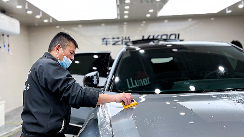 3.看该店的施工细节和流程,比如刮板的使用,软硬的不同可能就影响到了贴膜后的胶纹状况,也要看一看师傅施工是横刮还是竖刮,手法不同,最后的效果也不一样。